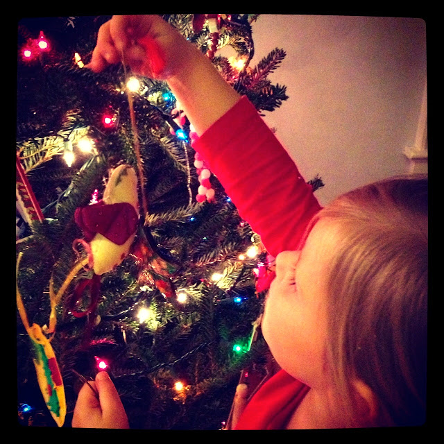 We FINALLY decorated our tree last night! Notice the absence of ornaments on the bottom…attempting to keep them out of reach from Boozer and L. We’ll see how long this lasts…