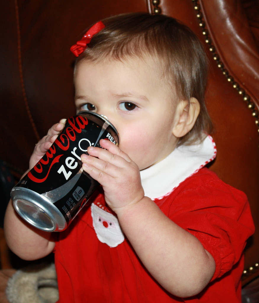 Little E got a hold of my Coke yesterday, literally, right before we were headed out the door. I seriously left the room for two seconds, and heard her slurping away. I was actually impressed that she didn’t spill it ALL over herself and the rug. Thank goodness! Still needed a quick change though.