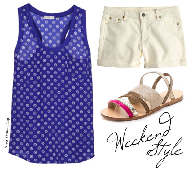 Striped Racerback Cami (on sale) is another one of my favorites. I love the style of this one and pair it with many of my colored chino shorts.