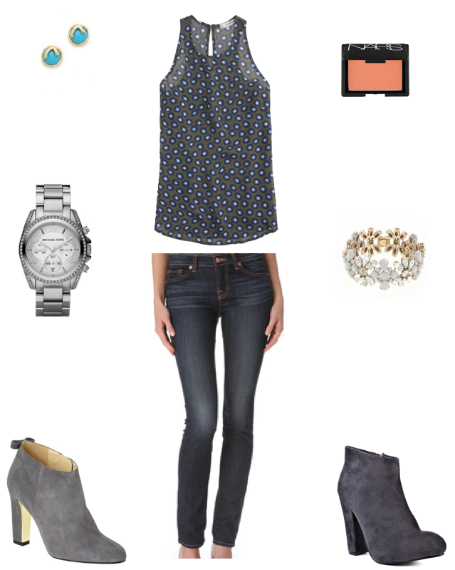 Lulu Frost Immortality Earrings (on sale, $76 from $192) // J.Crew Racerback Tank (on sale, use code: FALLSTYLE for 25% off) // NARS Orgasm Blush // Michael Kors Blair Watch // J Brand Midrise Rail Jeans (on sale) // J.Crew Stone Bracelet (get 25% off, with code: FALLSTYLE) // Kate Spade Netta Booties // Diba Booties (the look for less, use code: SALE15 to receive 15% off and free shipping)