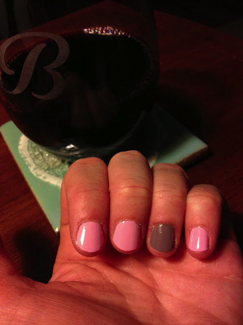 Love my newest manicure. The colors are Essie Muchi, Muchi and Essie Chinchilly. I was informed by my sister that the reason girls wear a different color on their ring finger is to let others know they’re independent, and proud of it! Oops! I had no idea!