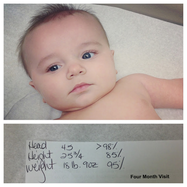 I took little V to his four-month check-up on Tuesday. Looks like I shouldn’t be calling him “little” V anymore. He is still the sweetest baby, always smiling, cooing, and most recently, talking! Cracks me up! Poor thing is probably trying to get a word in, to get some attention around here – so thankful he’s not crying, when he wants that extra attention!