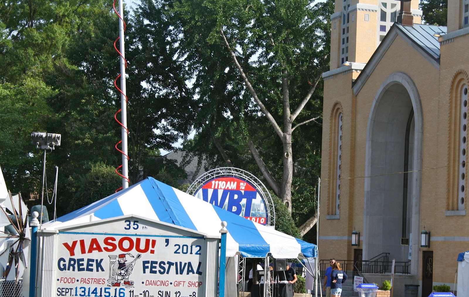Last Thursday, we headed to the Greek Festival (a weekend’s fill of Greek food, fun rides and Greek dancing at a local Greek church here in Charlotte). While we haven’t an ounce of Greek blood in our bodies, Scotch Irish on both sides, we try and attend the festival every year…and so do many other Charlotteans. I’m always amazed at what kind of turn-out it brings every fall. Parking can be a nightmare, but once you’re in, you’re in!
