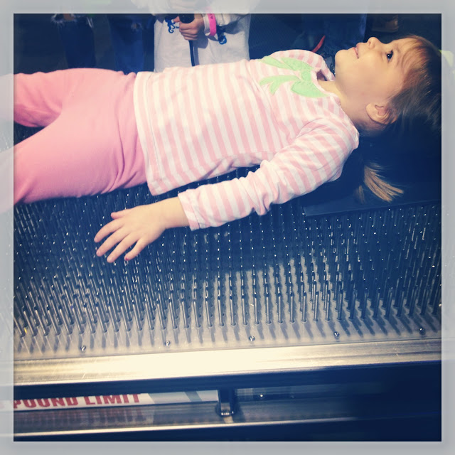 I hated I had to miss the outing, but laundry and cleaning had to get done that day, and there’s always next time. Seriously though, check out E on this bed of nails! They also rode the train into town for the first time, and LOVED it!