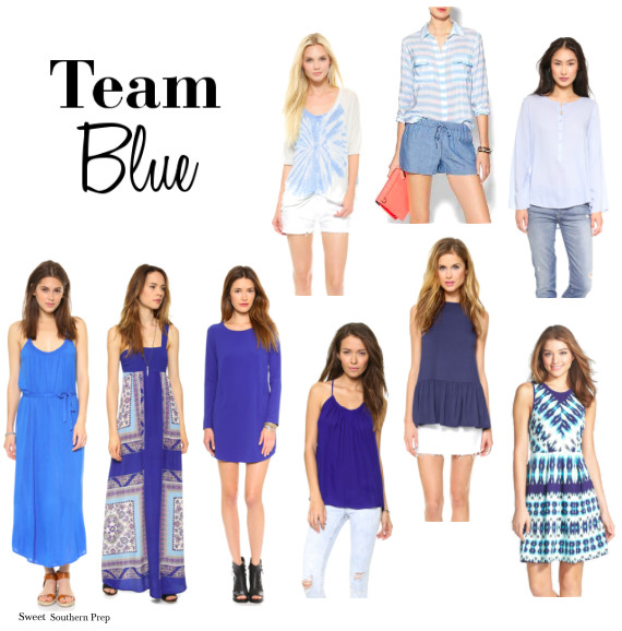 BB Dakota Blue Shift Dress // Karen Zambos Scarf Print Maxi // Soft Joie Laguna Maxi // BB Dakota Light Blue Top // Rachel Pally Sleeveless Top // Ramy Brook Olivia Top // Raquel Allegra Raglan Top // Equipment Stripe Blouse // Felicity & Coco Ikat Dress //