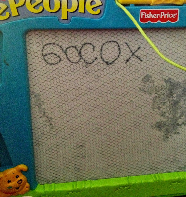 W has been practicing her spelling, all by herself. In true sports fan form, what do you think?