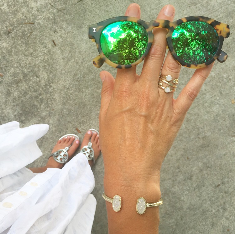 Accent colors for fall can be included not only in clothes, but accessories and darker make-up tones too (think amber eyeshadow or a darker lipsticks). I’ve been talking so much about my new tortoise shades I’m in love with and plan to wear them so much this upcoming fall season. In fact, I got them in last week and have already worn them a lot. And my new jewelry! These were some pieces I featured on one of my most recent ‘Loving Lately’ posts, and just had to order them. Whatever the season, this stackable ring (colors are selling out quickly) and this bracelet could be worn year round. It’s a little too warm for me to wear closed-toe shoes just yet, these sandals are on sale (they fit true to size).