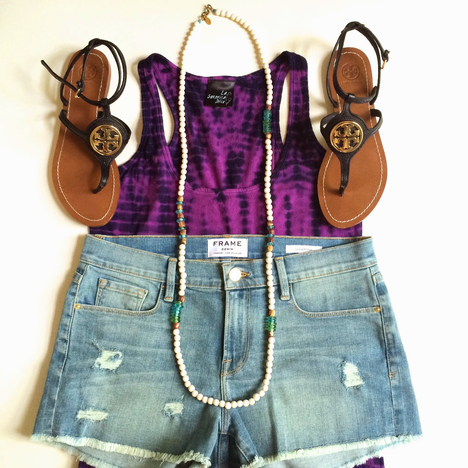 It’s pretty hot here today. Thought this was the perfect thing to wear. I know I wear them all the time but these FRAME Denim Cutoffs are still on sale, $50 off! The softest denim you’ll ever own. For sizing, they run large so order a size down. The necklace is Melvin. These Tory Burch Leticia Sandals go with everything, and are super comfortable. True to size.