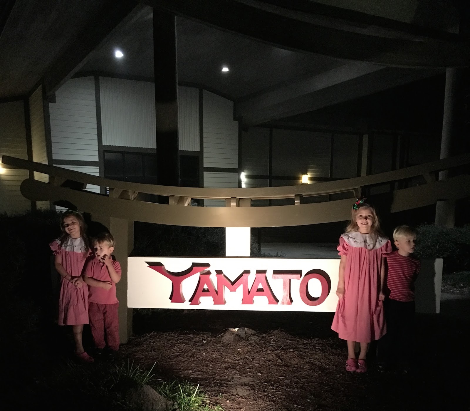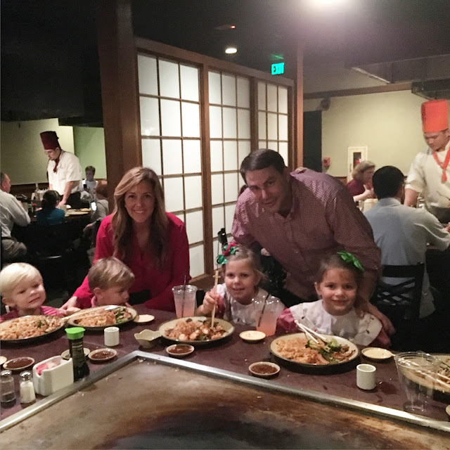 This was the girls’ second time at a Japanese Steakhouse. The first time was when we celebrated Effie’s 2nd birthday and Wheeler kind of remembered it, but Effie didn’t. Let’s just say that last time she was entertaining by the chef, this time she hid under the table every time she saw fire. You can see the apprehension in her face.