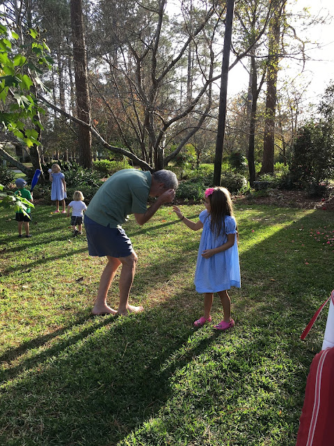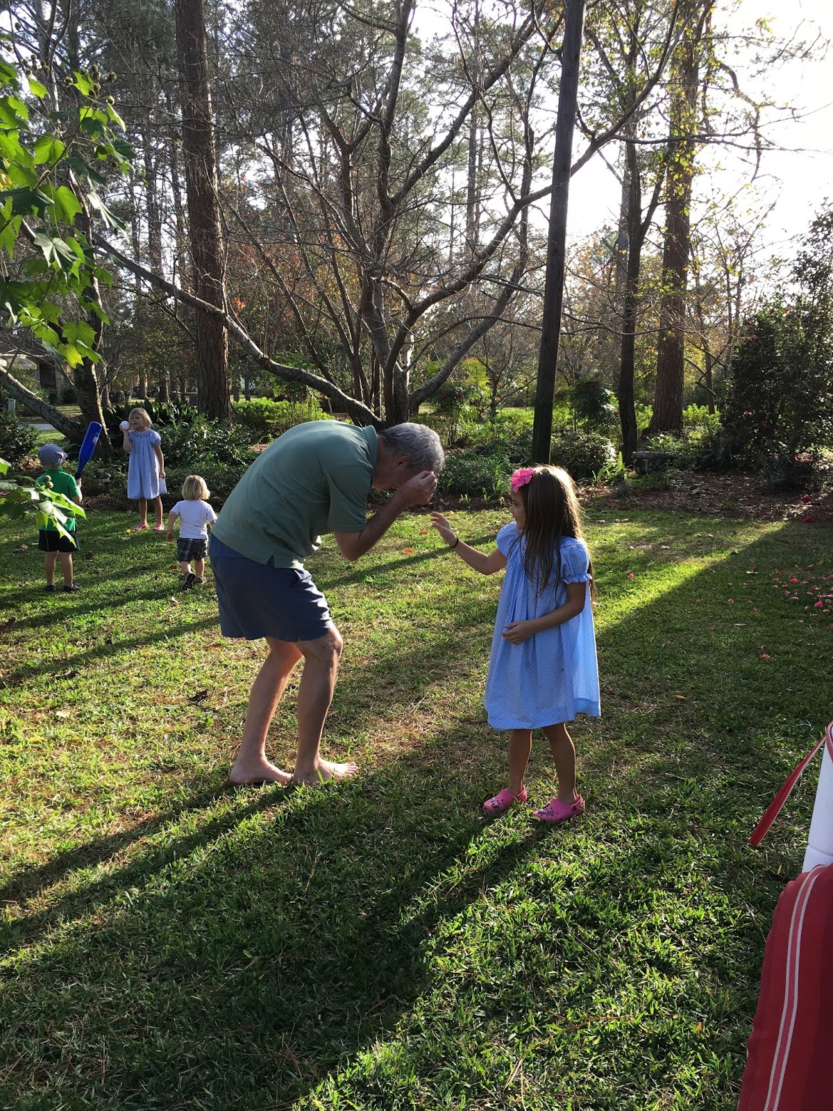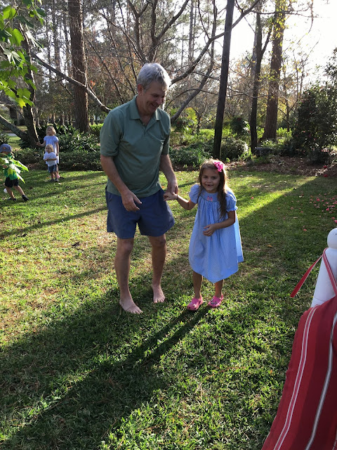 Wheeler and Logan playing ball in the background, while my father-in-law (Poppy) danced with Effie.