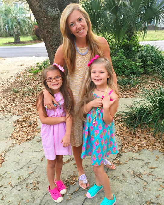For as much as I love the Pink Chicken line, imagine my surprise when they debuted a line at Target called Happy. Wheeler’s ice cream dress is part of that line and it’s on sale for $19.50! Wheeler’s wearing her turquoise Natives and Effie’s got on her pink ones.