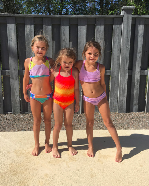 The girls with one of their buddies. Wheeler and Effie are wearing this Mara Hoffman Swimsuit, it’s reversible so it’s like getting two suits for the price of one.