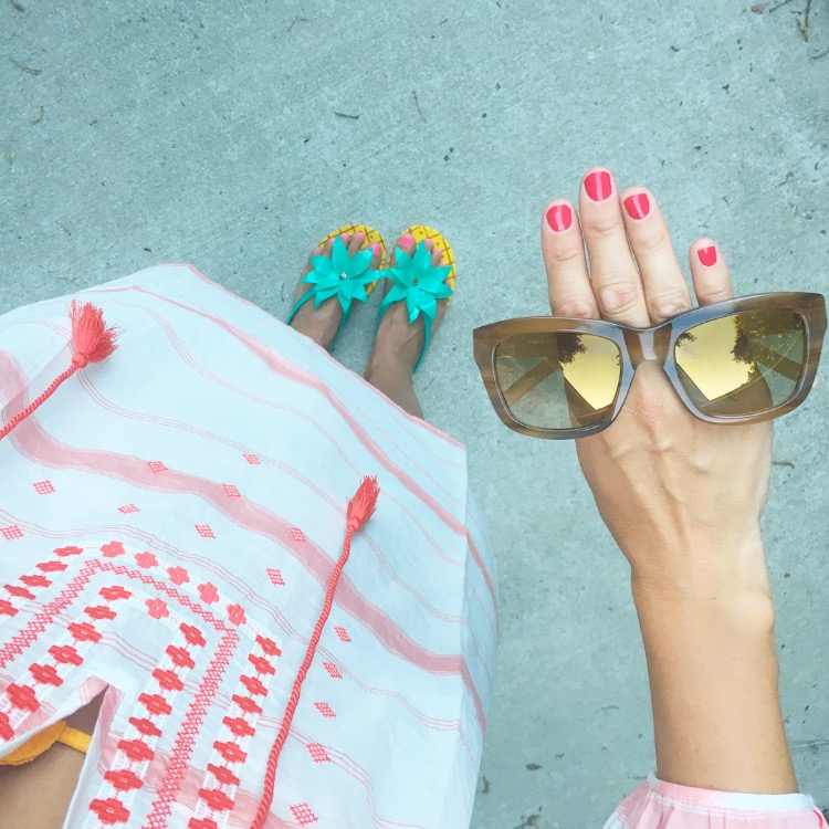 Kate Spade ‘Main Squeeze’ Sandals (true to size and super comfy!) // Aqua Tassel Cover-Up // Hot Pink Polish (Headliner)