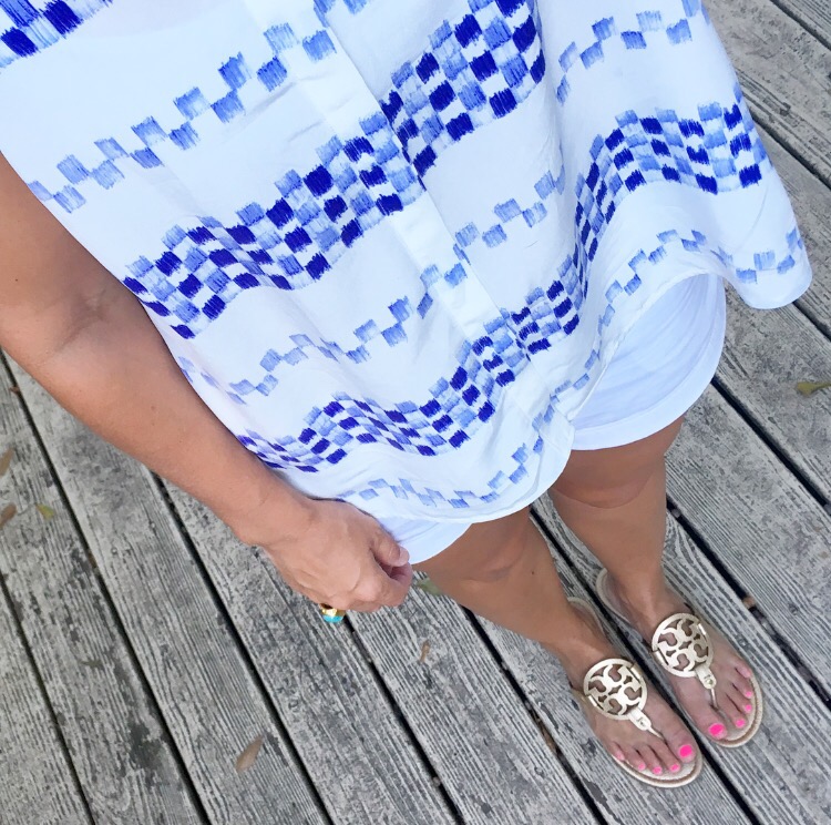 Embroidered Top (wearing a small, now on major sale! Was $238, now $95!) // Shorts // Sandals // Necklace (as a bracelet) // Ring // Lipstick (Fireball Matte) // Earrings