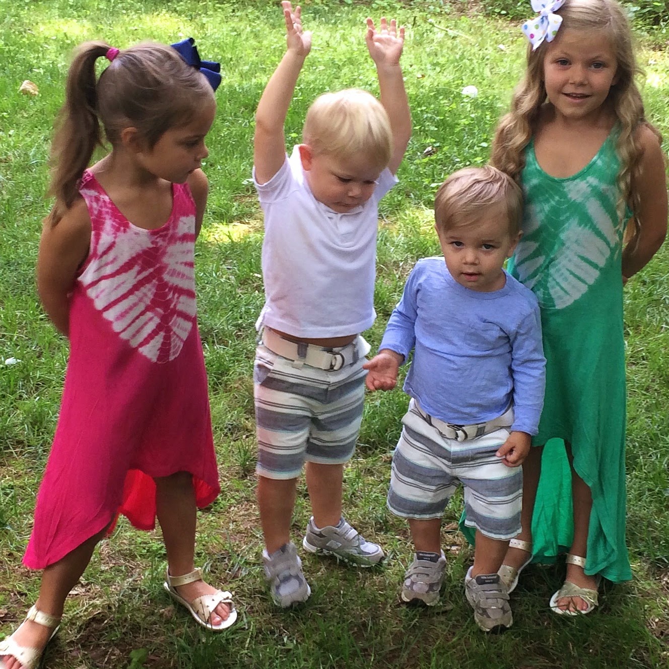 How sweet are these little tie-dye dresses (now on sale!)? The awesome ladies at GUESSkids sent these gifts over, as well as some cool striped shorts for the boys. The girls seriously want to wear them everyday, and in fact, they both slept in them the other night!
