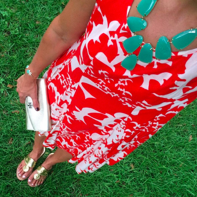 I finally got a chance to wear this dress last night, and I absolutely love it! A great length and I love how flowy it is! The colors are pretty perfect for fall too! Paired it with these sandals (on sale) // Clutch // Bangles