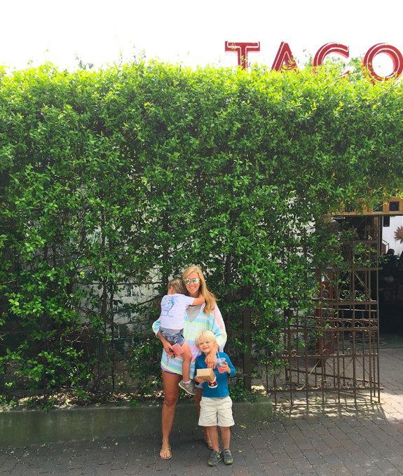 This Mara Hoffman Poncho I wore yesterday is part of her active line. I thought for sure it was a beach cover-up when I tried it on, since it’s a terry material. Apparently, it can also be a light layer on a cool day because I wore it that way yesterday. After picking up the boys from school, I had every intention of taking the boys home for lunch. But Lanier called and asked if we wanted to meet him somewhere, so we did. I’d honestly just thrown this poncho on as I was walking out the door and had work-out shorts on underneath it. Next time, I plan on pairing it with a pair of white shorts or even white jeans would look great with it. It’s also so popular that it’s now sold out at both Nordstrom and Shopbop, but still available here and here.