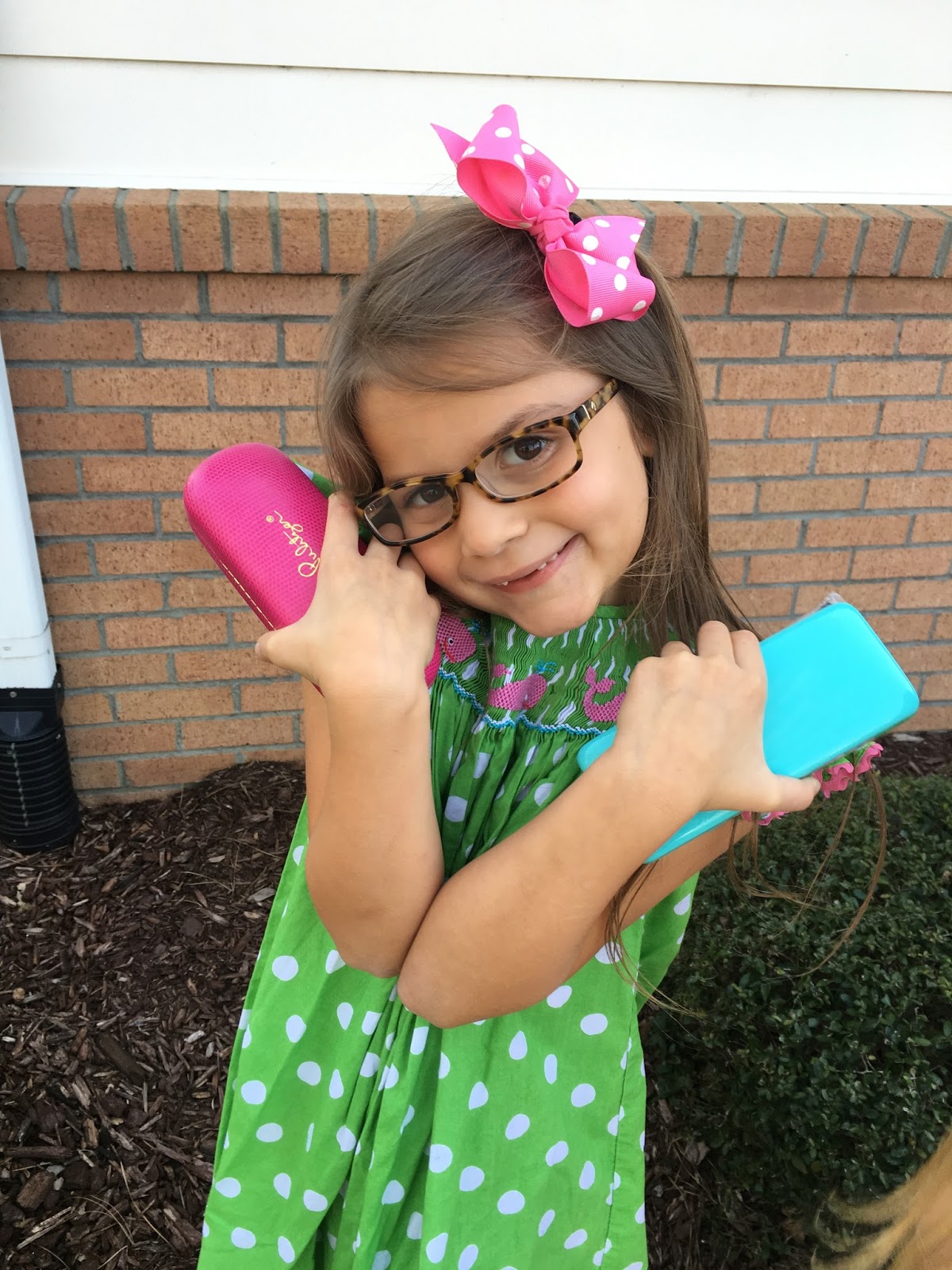 I mentioned last week that after Effie’s eye appointment last week, she was going to have to get glasses. Well, we picked both pairs up on Wednesday and she loves them! And naturally, we had to take TONS of pics in her new stylish glasses…