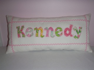 It’s a Girl Thing is giving away a personalized applique pillow, with Lilly fabric, to the lucky winner!
