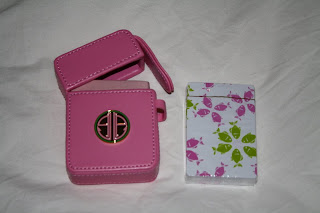 Over on my Google dashboard, there are giveaways galore! Must be the season for them. 🙂 Well, I’m ready to join in the fun too. I cannot believe it, but after two months, I am up to over 50 lovely followers! To celebrate, I’m going to giveaway some cute little goodies. I’m hoping these gifts will help a lucky winner get through the spring and summer months, and brighten each day! Lilly playing cards and leather case for socializing, fun, pink and yellow drop earrings, and OPI polish for primping.