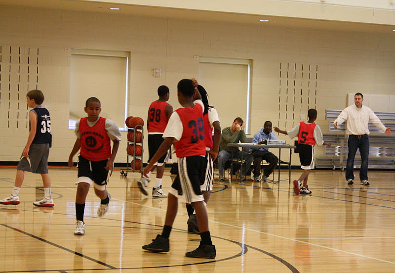 The hubs (in white shirt) coaching his first basketball game of the season (they won 25-5!).