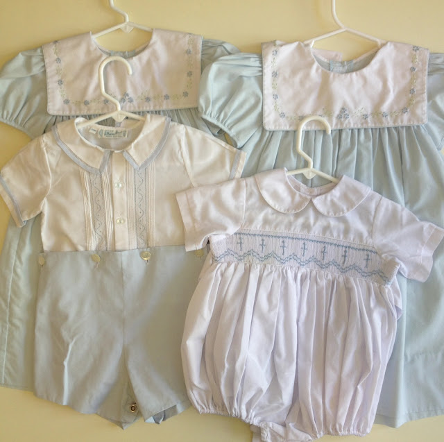 Speaking of little V, he’s being baptized this Sunday. Here’s what the children will be wearing…