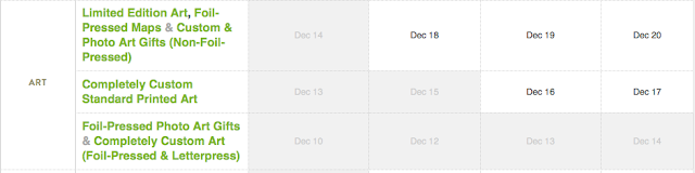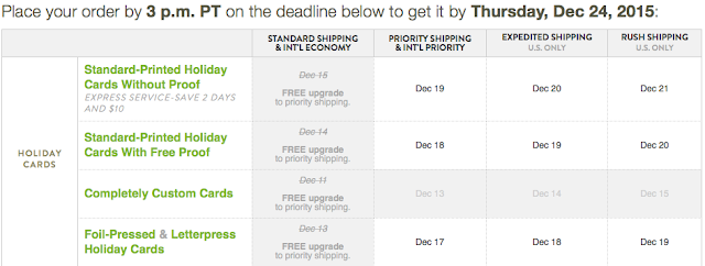 I’ve provided a graph below that shows shipping deadlines for you, from Minted. You can also click here for more details. And I for one think it’s totally okay if Christmas cards still arrive a few days after Christmas.