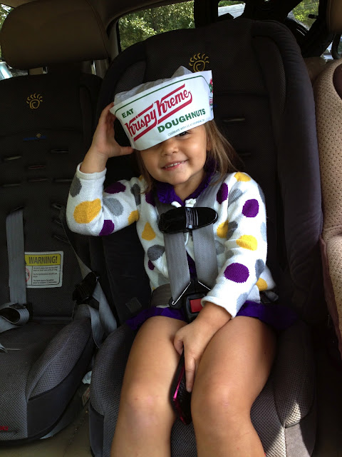 Yesterday, after dropping W off at school, E, L and I headed over to the new Krispy Kreme Doughnuts, that just opened this past weekend. E had the best time, and devoured two whole doughnuts!