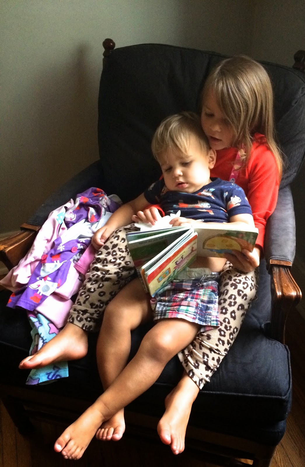 When Logan and her daddy got up, she took over. Listening to her “pretend read” to Vaughn is quite funny! Her stories are very descriptive!