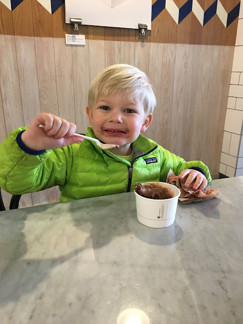 Next stop, on their day off from school, Jeni’s Ice Cream. A little slice of heaven for Logan. He LOVES chocolate! Vaughn doesn’t like it all, but he was happy eating lots of the waffle chips.