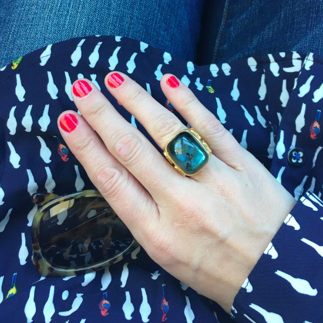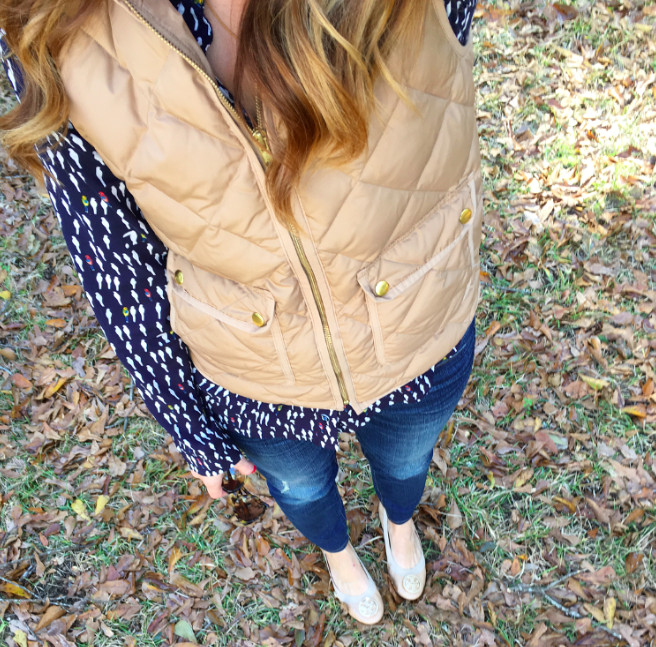 Vest (old, similar here) // Bird Blouse (love this blouse!) // Flats // Sunglasses // Necklace // Ring // Nails in Coral Canyon