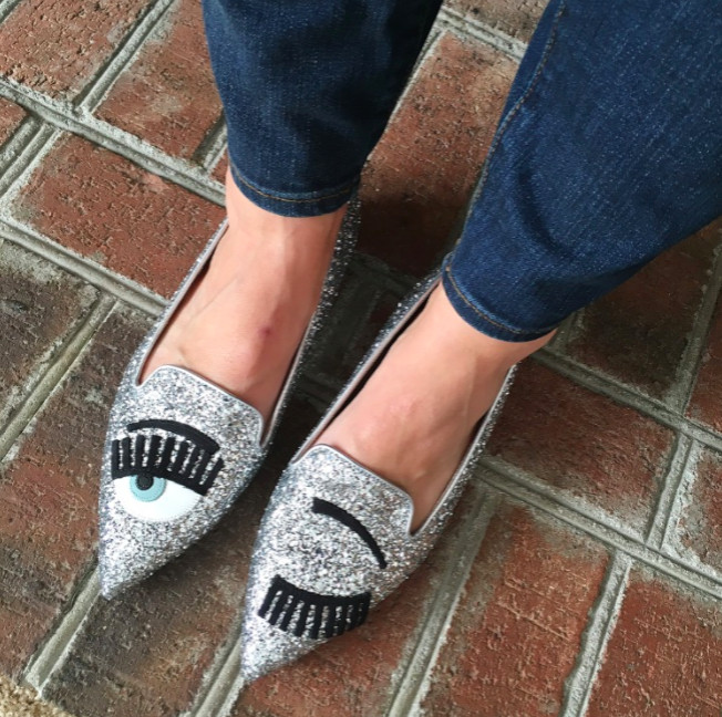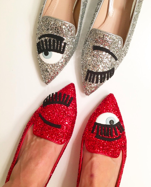 If you follow me on Instagram, I tried the new app called Boomerang. Basically, it makes one thing move in the photo. On Saturday night, I made my red glittery shoes click, but the lighting was so dark. Above is a better pic of the shoes.