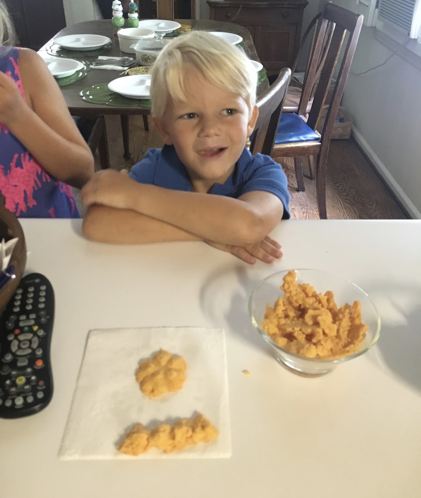 Logan enjoying his favorite treat – my grandfather’s cheese straws. He doesn’t make them as often as he used to, so you know it’s special when they’re in one of his bowls. His other bowl had Logan’s other favorite – chocolate!
