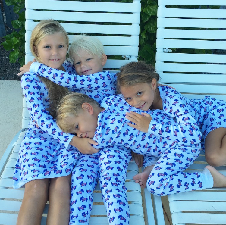 Matching in their Roberta Roller Rabbit pajamas last night, after dinner at the pool. This cute Scottie dog print is part of their new Highlands collection.
