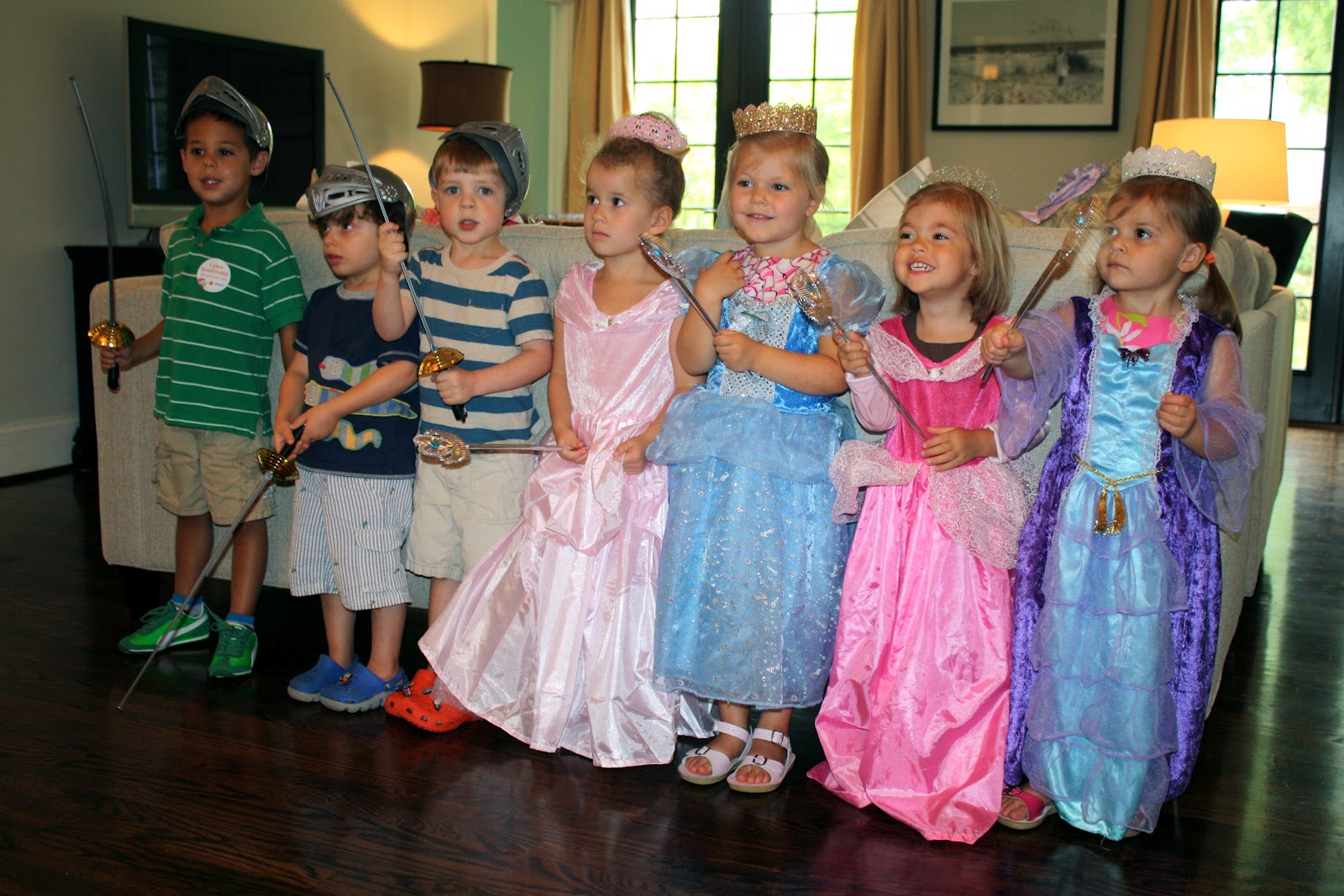 Attending W and E’s friend’s Knights and Princesses birthday party (she’s the one on the left)