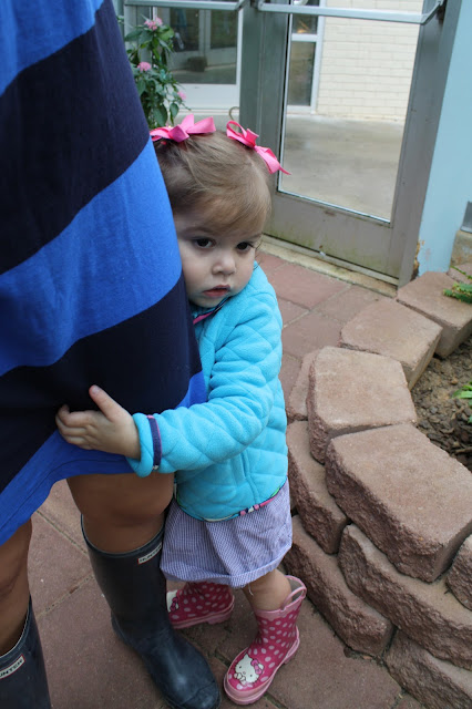 Those pictures are too cute! I'm loving your dress and rain boots!