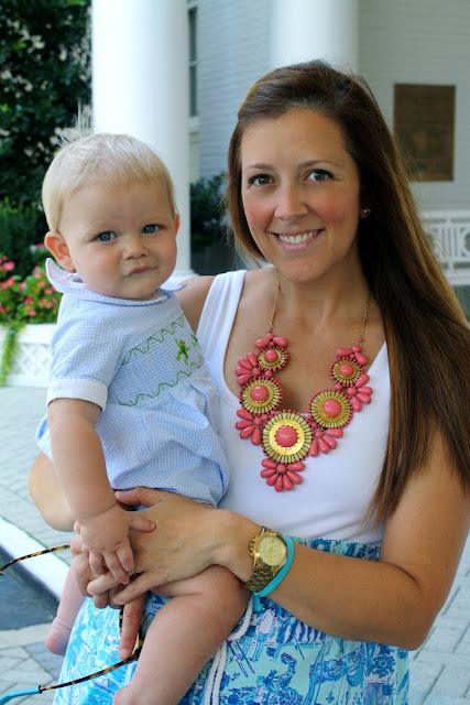 My dress is Lilly Pulitzer from two summers ago (The Nettie). And the necklace is from Anthropologie from a few season ago, but you can get a similar one HERE.
